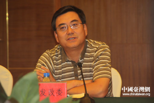 鄂爾多斯市發(fā)展和改革委員會(huì)副主任張占霖在座談會(huì)上答記者問(wèn)(中國(guó)臺(tái)灣網(wǎng) 王文英 攝)