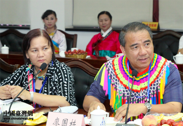 臺灣少數(shù)民族民意代表、中華兩岸少數(shù)民族知識經(jīng)濟交流協(xié)會理事長廖國棟,在“寧夏、臺灣少數(shù)民族座談會”上發(fā)言。(中國臺灣網(wǎng) 陳佳慧 攝)