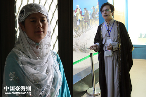 身著回族傳統(tǒng)服飾的博物館工作人員。(中國(guó)臺(tái)灣網(wǎng) 董潔 攝)