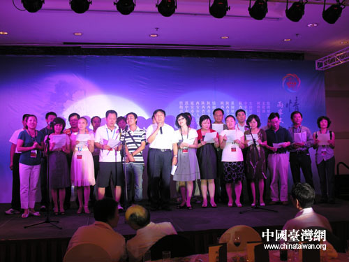 中國臺灣網(wǎng)7月23日西安消息 由中華文化聯(lián)誼會與陜西省政府主辦的“情系長安——兩岸文化聯(lián)誼行”,21日晚在古城西安圓滿閉幕。閉幕式上,參加此次活動的文化界人士為慶祝這次兩岸文化界的盛舉圓滿成功,舉行了一場別開生面的大聯(lián)歡。無論是衣冠楚楚的教授還是彬彬有禮的文化官員,無論是滿腹經(jīng)綸的學(xué)者,還是各有所長的藝術(shù)家,每個人拿出看家本領(lǐng),各顯其能,讓閉幕式沉浸在歡歌笑語中。