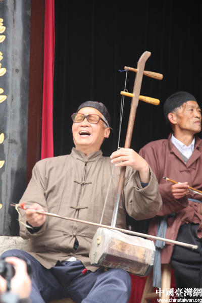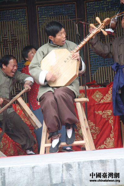 關(guān)中老腔演員神情投入的表演(中國臺灣網(wǎng) 何建峰 攝)