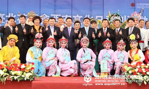 眾嘉賓在臺北花博會“西安文化日”系列活動開幕式上合影留念