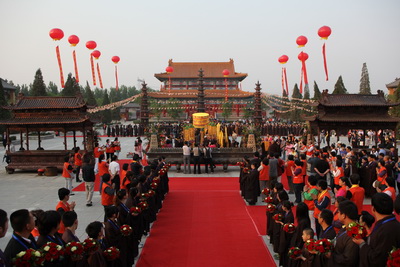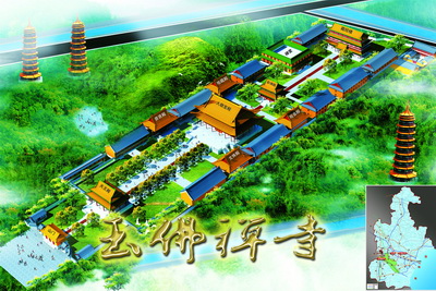 天津玉佛禪寺前身為“法藏寺”,始建于周隋之間(約公元557年~581年)毀于清末民初。2003年8月,天津市宗教局批準(zhǔn)重建該寺,更名為玉佛禪寺。寺院占地寬廣,院內(nèi)翠柏蒼松,枝葉茂密,綠蔭昂然。寺院主體中軸對稱、回廊連接、翹角飛檐、朱漆彩繪。延中軸線依次建有山門、天王殿、大雄寶殿、臥佛殿等;兩側(cè)為鐘鼓樓、文殊、普賢、觀音、地藏四大菩薩殿等。值得一提的是,寺院全堂佛像均為緬甸玉石雕刻而成,且尊尊佛像雕刻精美,姿態(tài)威武,氣魄雄偉,比例勻稱,盡顯神通靈感,別具特色。