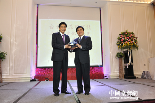 郭金龍與郝龍斌互贈禮品(邢慶攝)