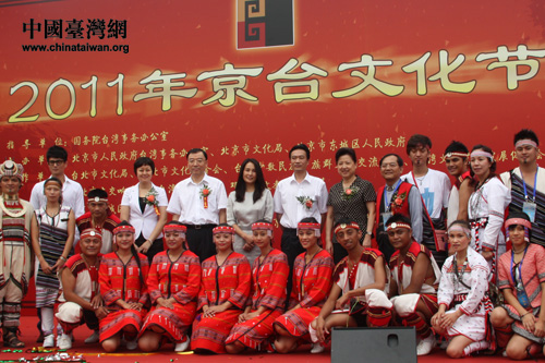 中國臺灣網(wǎng)9月1日北京消息 今日上午,以“交流·融合”為主題的2011年京臺文化節(jié)在北京前門臺灣文化商務區(qū)開幕。國臺辦交流局副局長嚴中洲、北京市臺辦主任馬玉萍、北京市文化局局長肖培、臺灣少數(shù)民族知名人士高金素梅等出席了開幕式。