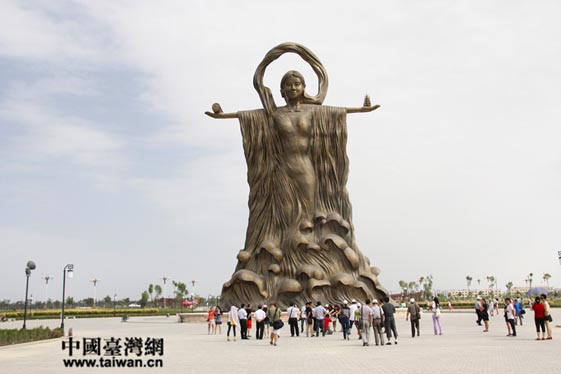 網(wǎng)媒記者參觀黃河母親塑像(中國(guó)臺(tái)灣網(wǎng) 李婷婷 攝)