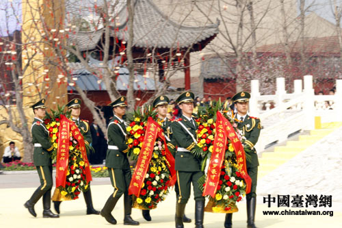 海內(nèi)外嘉賓向黃帝敬獻(xiàn)花籃