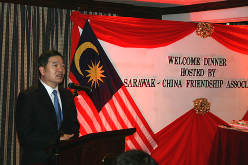 藝術(shù)團(tuán)于元宵日抵達(dá)古晉,受到駐古晉總領(lǐng)館謝福根總領(lǐng)事和砂中友好協(xié)會(huì)黃國忠會(huì)長等的熱烈歡迎。毛澤宗 攝
