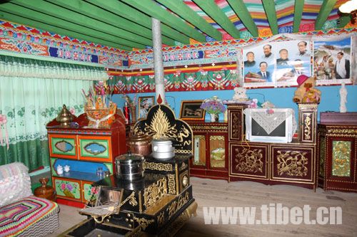 采訪團(tuán)安排大家訪問了公眾村的一戶普通農(nóng)家。戶主叫尼瑪次旦,今年59歲,有四個(gè)女兒兩個(gè)外孫女,加上老兩口一共8口人。收入主要靠運(yùn)輸砂石,有一輛裝載車、一輛裝載機(jī),去年6月份開始又開辦了家庭旅館。尼瑪次旦說現(xiàn)在每年收入十幾萬元。對于他這樣的農(nóng)民來說,日常開銷主要是衣食住行和子女的學(xué)費(fèi),而冬季取暖、住房建筑、兒童義務(wù)教育(西藏九年制義務(wù)教育是完全免費(fèi)的)等方面,政府都有補(bǔ)助政策。他們家現(xiàn)在住的房子是5年前蓋的,共花了20多萬,1998年左右,家里就已經(jīng)通了電話。