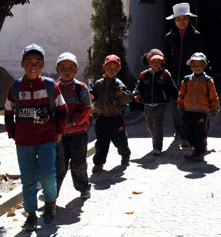 照顧孤兒生活起居的護理員帶著孩子放學(xué)歸來(10月20日攝)。