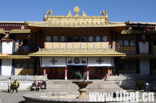 1954年中央人民政府為十四世達(dá)賴在北面建了新宮。新宮內(nèi),栩栩如生的壁畫豐富多彩。引人注目的是新宮北殿西側(cè)經(jīng)堂內(nèi)畫的菩提樹下的釋迦牟尼與八大弟子圖,那種靜穆沉思的虔誠神態(tài)刻畫得非常逼真,是一幅不可多得的精彩作品。
