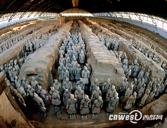 從古城西安出發(fā),沿著西臨高速公路東行約15分鐘,那景色秀美、逶迤起伏的驪山便映入你的眼簾。在驪山北麓,茂密的林木掩映著一組體量宏大、外觀別致的建筑,這就是聞名世界的秦始皇兵馬俑博物館。兵馬俑坑發(fā)現(xiàn)之前,這里曾是一片荒石灘,野狼出沒,異常荒涼。如今,這里已經(jīng)成為人們西安旅游的首選之地。