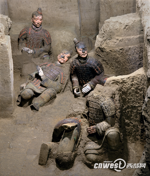 彩繪俑出土現(xiàn)場(chǎng)