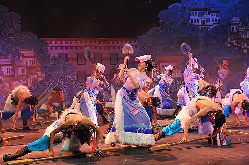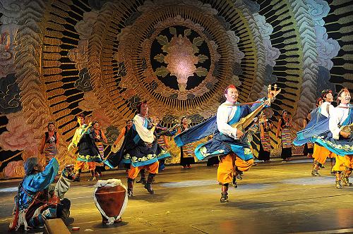 當(dāng)日,由西藏珠穆朗瑪集團(tuán)出品的大型西藏原生態(tài)歌舞詩(shī)《幸福在路上》在拉薩上演。該作品以多視角、多空間營(yíng)造神奇、圣潔、質(zhì)樸和熱忱的浪漫風(fēng)格,展現(xiàn)西藏獨(dú)特、悠久而燦爛的傳統(tǒng)文化。新華社記者 魯鵬 攝