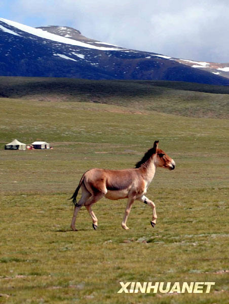 生活在羌塘自然保護(hù)區(qū)的國(guó)家一級(jí)保護(hù)動(dòng)物藏野驢奔跑在草原上(7月30日攝)。 新華社記者 唐召明 攝