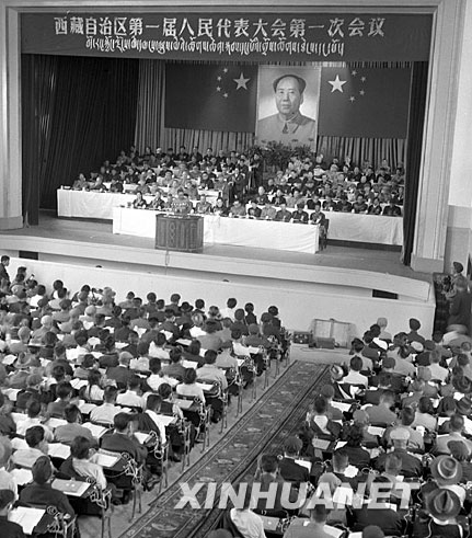 資料圖片:1965年9月,西藏自治區(qū)第一屆人民代表大會第一次會議召開,選舉產(chǎn)生了西藏自治區(qū)自治機關(guān)及其領導人,宣告了西藏自治區(qū)的正式成立。阿沛·阿旺晉美當選為自治區(qū)人民委員會主席,一大批翻身農(nóng)奴擔任了自治區(qū)各級政權(quán)機關(guān)的領導職務。西藏人民從此享有了自主管理本地區(qū)事務的權(quán)利。新華社發(fā)