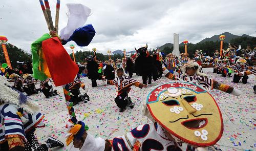 2009年8月20日,拉薩市小學生在布達拉宮廣場表演藏戲。新華社記者 格桑達瓦 攝