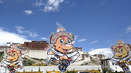 資料圖片:這是拉薩布達拉宮廣場前擺放的雪頓節(jié)吉祥物(8月20日攝)。 新華社記者 普布扎西 攝