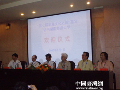 湖南師范大學(xué)黨委副書記盧岳華在致辭中對(duì)臺(tái)灣參訪團(tuán)的到來(lái)表示熱烈歡迎。盧岳華向臺(tái)灣嘉賓介紹了湖南師范大學(xué)的歷史,他指出,兩岸文化同根同源,通過(guò)舉辦這樣的音樂(lè)交流活動(dòng),兩岸音樂(lè)學(xué)子互訪互學(xué),加強(qiáng)了解,通過(guò)深入的討論,找到兩岸音樂(lè)學(xué)習(xí)的結(jié)合點(diǎn),將對(duì)兩岸音樂(lè)學(xué)術(shù)的發(fā)展起到互相促進(jìn)的作用。盧岳華說(shuō),八月的長(zhǎng)沙是熱情洋溢、活力四射的季節(jié),寶島臺(tái)灣的客人帶來(lái)的動(dòng)聽(tīng)音樂(lè)像一縷清風(fēng)吹進(jìn)我們的心田,海峽兩岸的學(xué)子在音樂(lè)的自由世界里,共同譜寫“音樂(lè)心航線”的美麗篇章。盧岳華并預(yù)祝兩岸學(xué)子聯(lián)誼晚會(huì)圓滿成功!