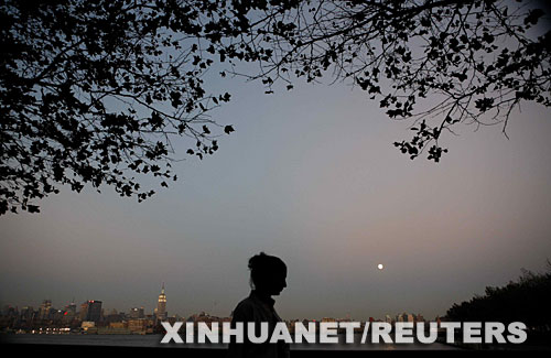 9月25日,在美國新澤西州霍博肯,一名女子從哈得孫河附近經(jīng)過。 新華社/路透
