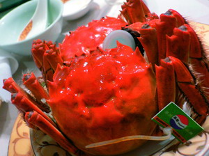 農(nóng)歷中秋,剛好進入吃蟹的季節(jié),這時,陽澄湖上海老飯店養(yǎng)殖基地的大閘蟹,殼青如洗,澄澈純潔,無雜色銹斑,絨密金黃,爪子有力,雌蟹體大豐厚,爪細短;雄蟹個大,爪長。飯店名廚陳相樂烹蟹頗有名氣,尤以清蒸大閘蟹叫絕,上籠蒸的火候掌握得當,出籠時蟹殼金燦燦紅澄澄,打開蟹蓋,蟹黃如金,蟹白似玉,蘸上陳師傅親手用姜絲、鎮(zhèn)江香醋等配制的調(diào)料,送入口中,肥嫩甘怡,再飲上一杯加話梅的加熱陳年紹興花雕酒,更有如沐秋日燦爛陽光般的感受。