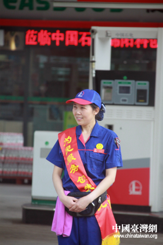 現(xiàn)在綿陽科創(chuàng)園加油站工作的李海蓉。汶川地震發(fā)生時(shí),她工作的加油站受損嚴(yán)重,并與外界失去聯(lián)絡(luò),但她與同事一起堅(jiān)守崗位,想方設(shè)法為救災(zāi)車輛及時(shí)提供了油料保障。(中國臺(tái)灣網(wǎng) 楊麗 攝)