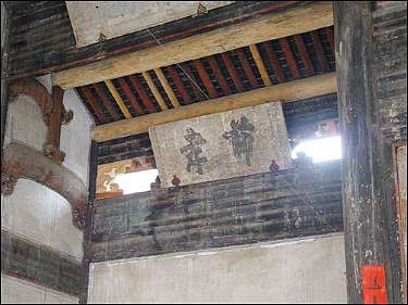 千柱屋正廳門樓制作講究,其門額以青石制作,上鐫“於斯為盛”4字,為九重篆。門額四周用磚雕人物、山水、龍鳳等圖案裝飾。過門樓即為正廳,五架抬式結(jié)構(gòu)。正廳兩側(cè)分設(shè)“叢桂堂”、“雙槐堂”、“福壽堂”、“仁壽堂”,均用青石鐫刻楷書堂名鑲嵌于壁上。今尚保存有“孝廉方正”、“彤管重輝”、“一枝挺秀之軒”、“石澗聽松之館”等匾額多方。屋內(nèi)廊柱林立,門戶重重,玲瓏剔透,令人目不暇接,有入五里霧中之感。