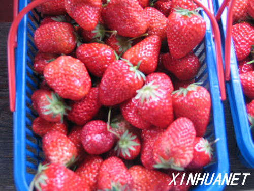生態(tài)成果展示園里向游客出售的新鮮草莓 新華網(wǎng)浙江頻道 王楠 攝