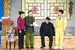趙本山(左三)和小沈陽(右一)、王小利(左二)、李琳(左一)表演小品《同桌的你》