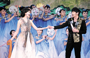 周杰倫(前右)和林志玲表演歌曲《蘭亭序》