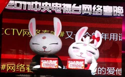 晚會(huì)主題歌《給力》以其優(yōu)美的旋律和動(dòng)感的節(jié)奏,深受網(wǎng)友追捧,傳唱率極高。晚會(huì)還一改以往主持人播報(bào)賀信賀電的慣例,由可愛(ài)的吉祥兔愛(ài)他(她)兔以網(wǎng)絡(luò)語(yǔ)言來(lái)播報(bào)。