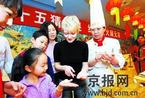 2月7日,來自加拿大的安娜女士(前右二)和中國朋友一起在學包湯圓!