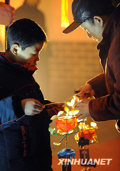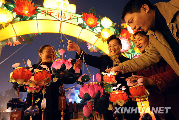 2月7日,市民們?cè)谥腥A門(mén)上燈活動(dòng)現(xiàn)場(chǎng)點(diǎn)亮花燈。新華社記者孫參攝