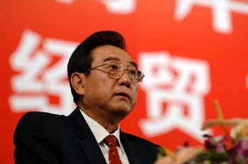 兩岸經(jīng)貿(mào)論壇舉行閉幕式 4月15日,兩岸經(jīng)貿(mào)論壇在北京舉行閉幕式。這是中共中央臺(tái)灣工作辦公室主任陳云林在閉幕式上講話。 新華社記者 王建華攝