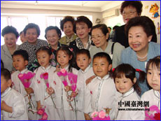 中華婦聯(lián)總會(huì)客人與聽障兒童合影
